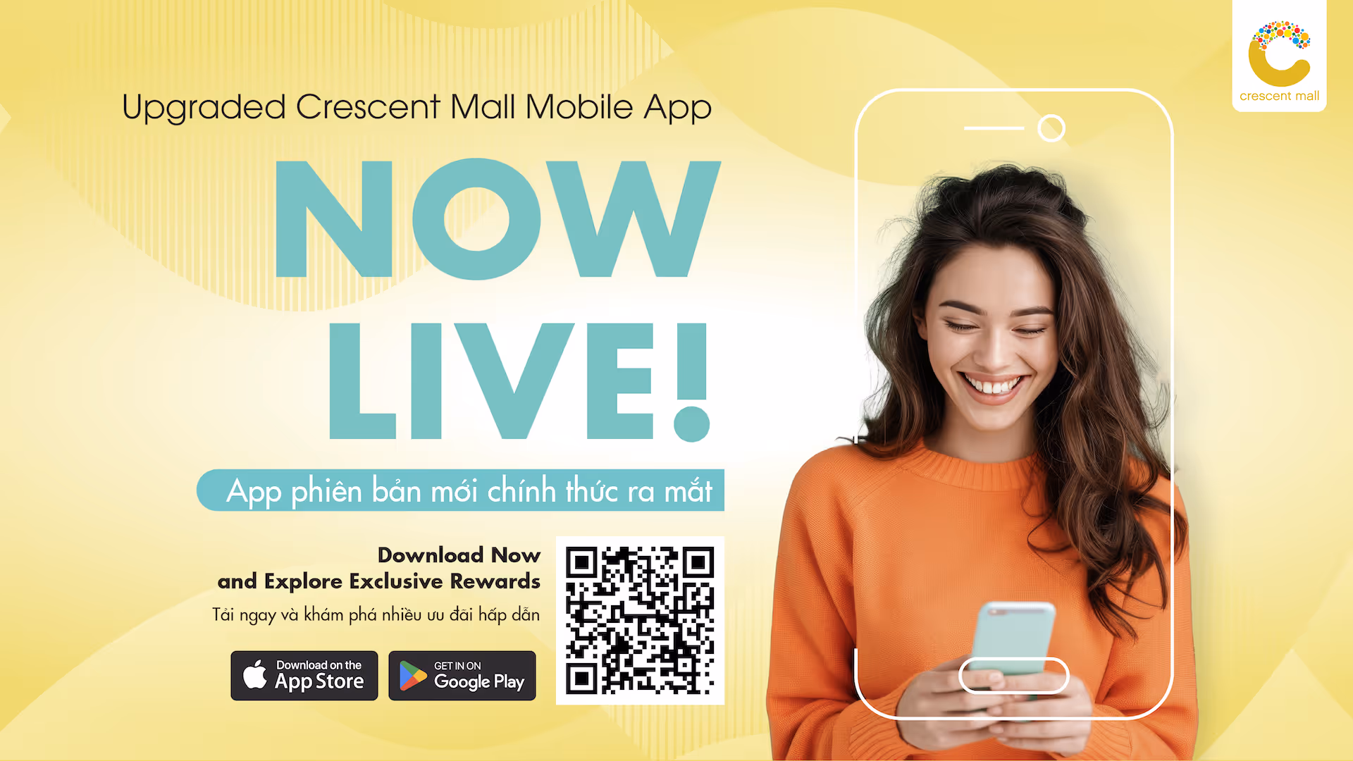Tải ứng dụng Crescent Mall Mobile từ App Store/Google Play.